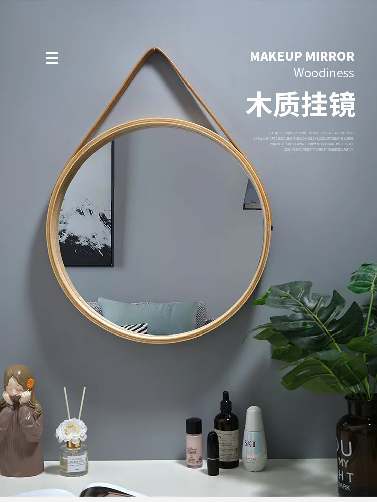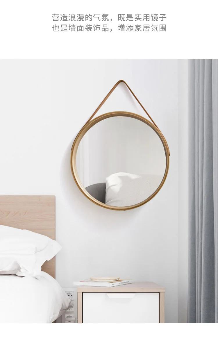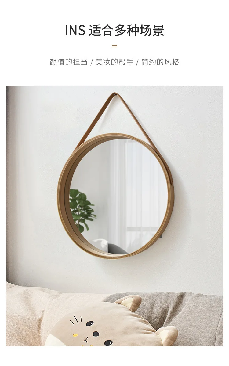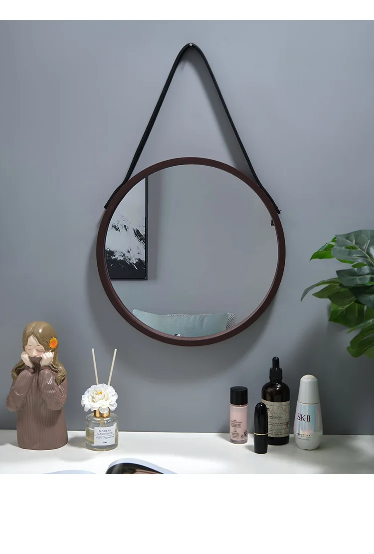 Material: espelho prateado + moldura de madeira + cinto de couro
